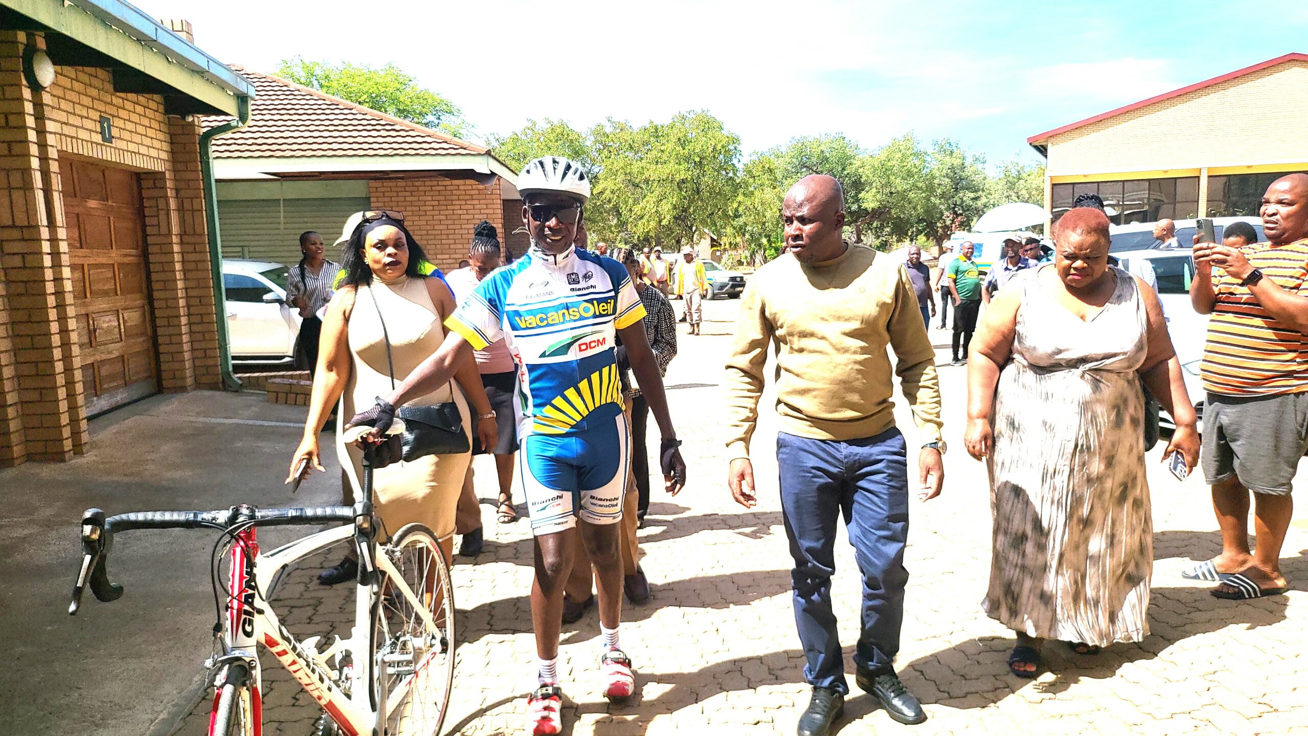 We recently welcomed cyclist Timothy Ramadwa who rode his bicycle from Cape Town to Musina in remembereance of those who passed on as a result of Covid 19. Here, he is welcomed by Musina Mayor Cllr Nkhanedzeni Godfrey Mawela as he arrives in Musina.